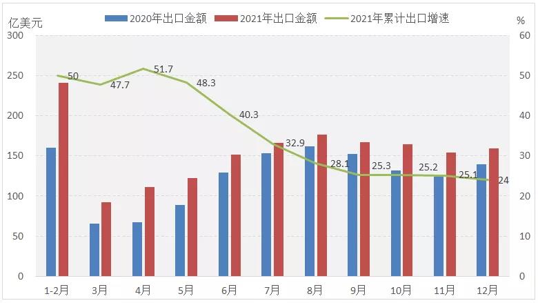 圖32021年服裝及衣著附件出口情況