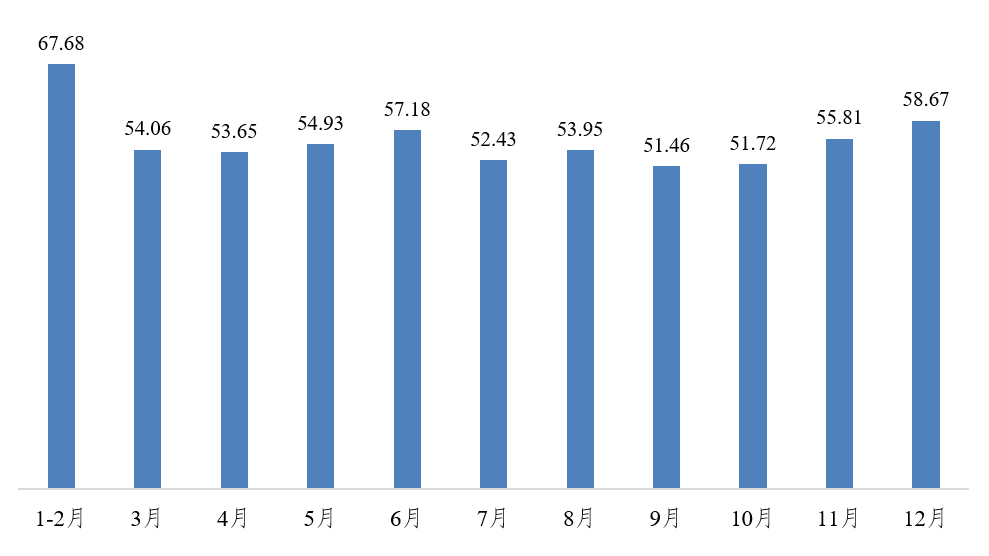 圖12021年規(guī)上企業(yè)印染布當(dāng)月產(chǎn)量情況(億米)