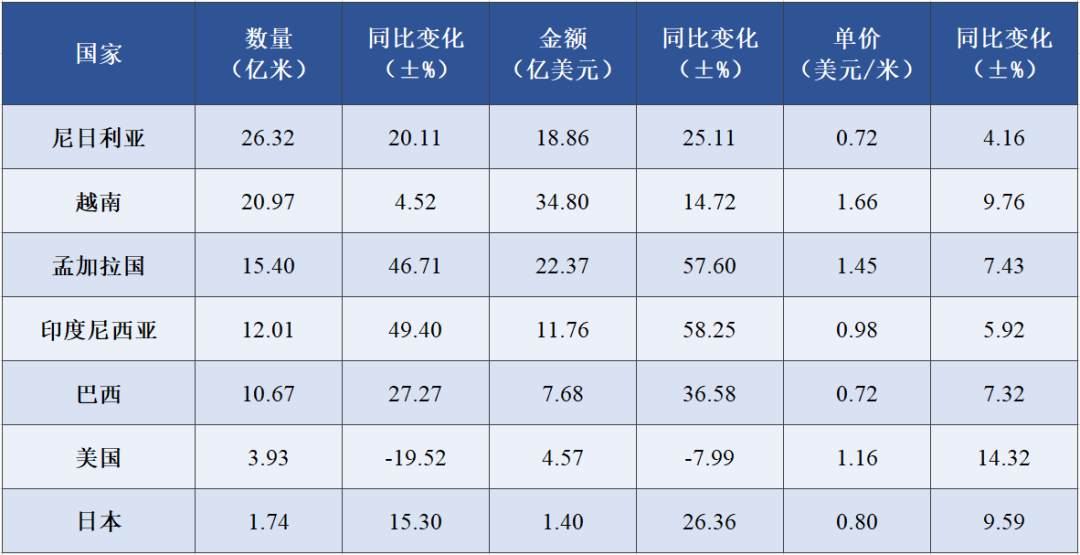 表22021年印染八大類產(chǎn)品主要出口市場(chǎng)情況