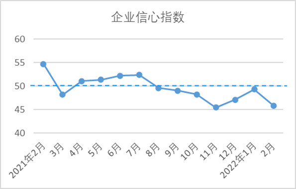2月,在宏觀政策發(fā)力和市場主體努力的共同作用下,國民經濟恢復勢頭向好,呈現出了陣陣的暖意,為今年1季度開好局奠定堅實的基礎。從行業(yè)看,受春節(jié)假期、復雜嚴峻的國際環(huán)境及國內疫情散發(fā)等多重因素影響,企業(yè)開機繼續(xù)下調,產銷受到一定影響,行業(yè)景氣指數周期性回落。隨著國際經濟環(huán)境日趨復雜,下游市場不及預期,企業(yè)信心有所下滑。