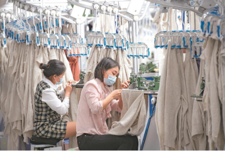 據(jù)新華社福州4月6日電 毛料入庫、織片、洗水、燙衣、包裝……走進(jìn)泉州佘氏織造有限公司的生產(chǎn)車間,數(shù)十名工人正戴著口罩分工協(xié)作,一派繁忙的生產(chǎn)景象??粗@一場景,公司副總經(jīng)理鄒賢發(fā)不由感嘆:“機器聲一響,心里特別踏實?!?/p>