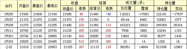 主力CF205合約當(dāng)日交易走勢(shì)圖