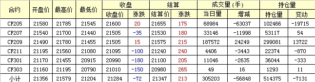 主力CF205合約當(dāng)日交易走勢(shì)圖