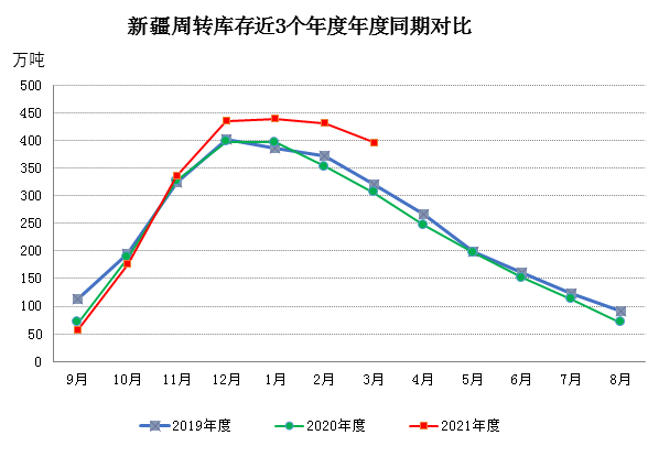 二、新疆棉花周轉(zhuǎn)庫存大幅減少
