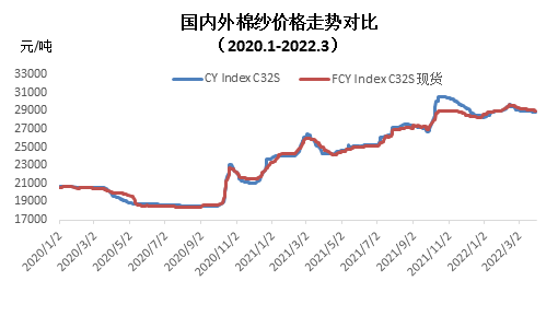 二、內(nèi)外棉紗價格均下跌