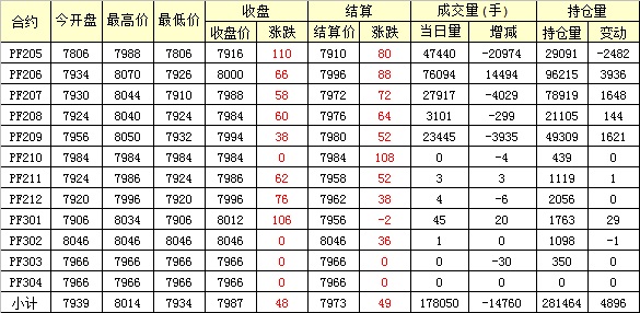 主力PF205合約當(dāng)日交易走勢(shì)