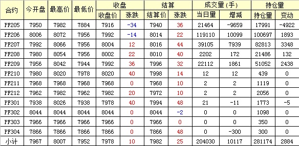 主力PF205合約當(dāng)日交易走勢(shì)