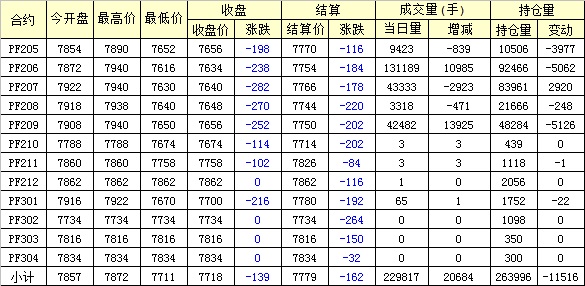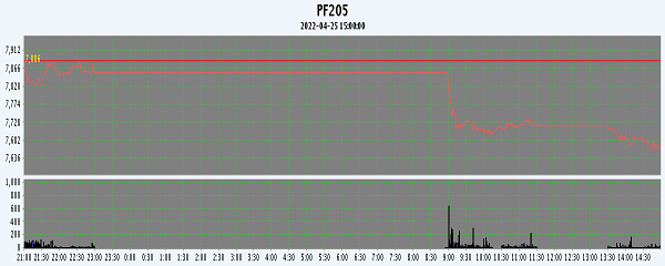 主力PF205合約當日交易走勢