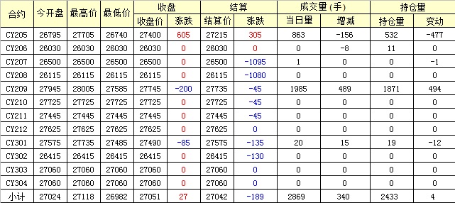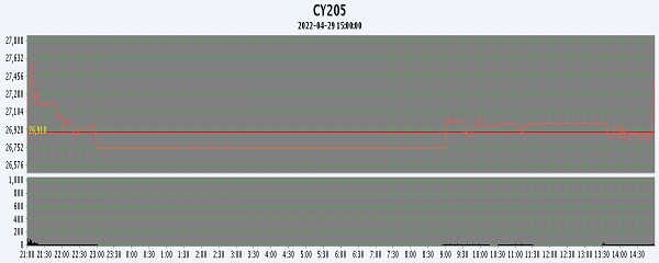 主力CY205合約當日交易走勢