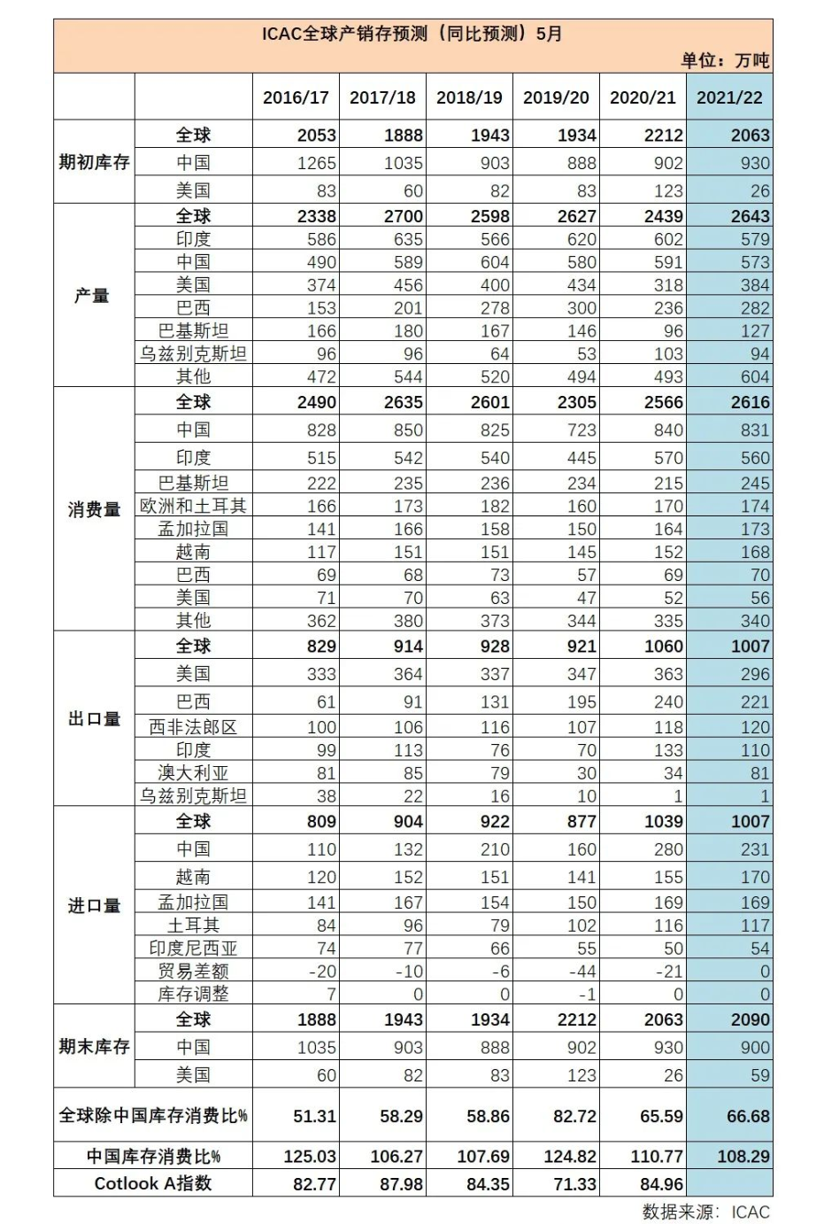 ICAC目前對(duì)2021/22年度平均A指數(shù)的價(jià)格預(yù)測(cè)區(qū)間為109美分至129美分,中值為每磅115美分。