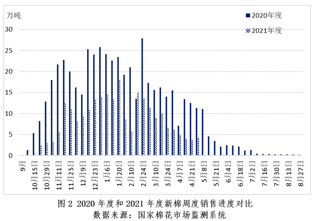 1、2021年度北半球棉花銷售進度較快,2022年新棉開始播種