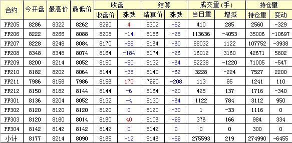 主力PF209合約當(dāng)日交易走勢