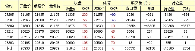 主力CF209合約當(dāng)日交易走勢(shì)圖