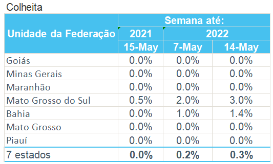 據(jù)巴西農(nóng)業(yè)部下屬的國家商品供應公司CONAB,截至5月14日,巴西棉花收割率為0.3%,上周為0.2%,去年同期為0%。