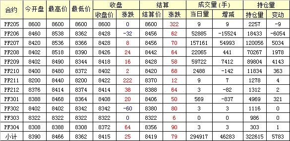 主力PF209合約當(dāng)日交易走勢(shì)