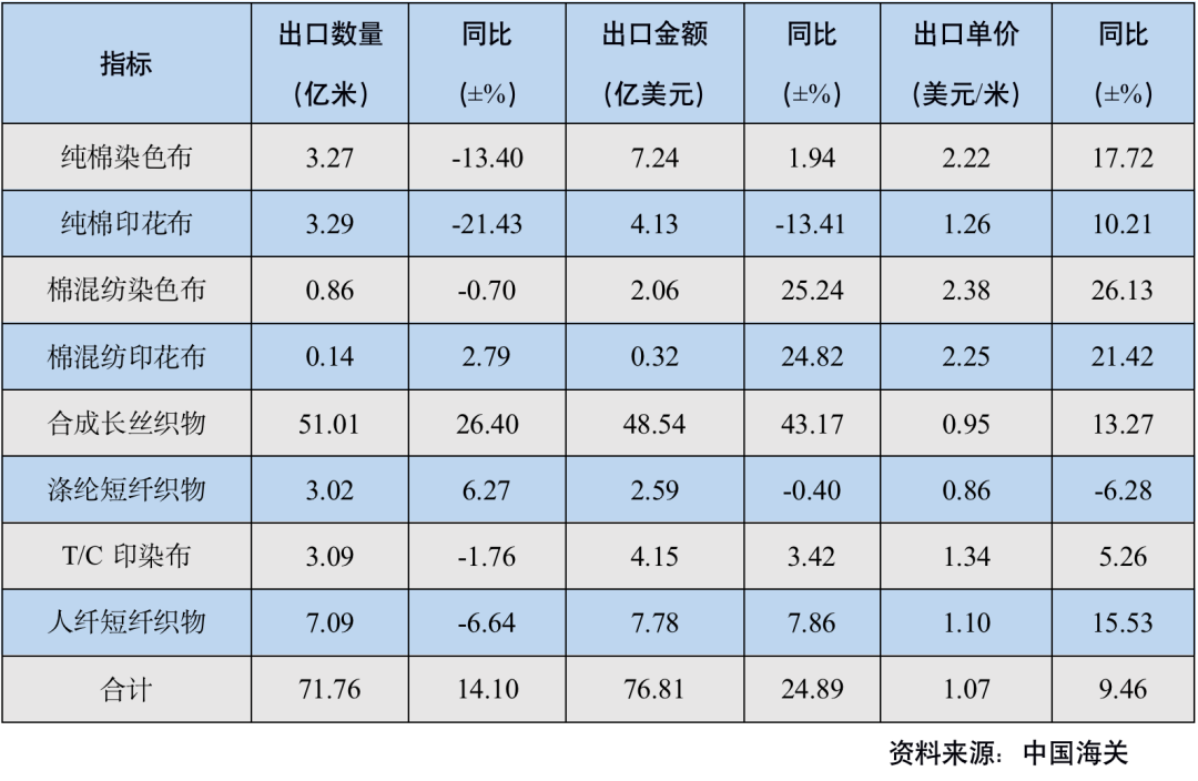表1 2022年1季度印染八大類產(chǎn)品出口情況