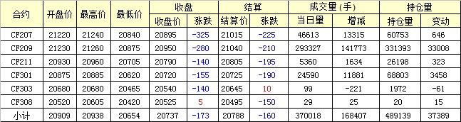 主力CF209合約當(dāng)日交易走勢(shì)圖