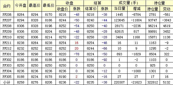 主力PF209合約當(dāng)日交易走勢