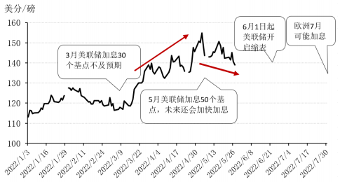 海外貨幣收緊政策已逐漸清晰。美國4月CPI同比增長8.3%,仍處40年高位,從抗擊通脹仍是美聯(lián)儲首要目標(biāo)看,美聯(lián)儲必須保持加息的步伐。美聯(lián)儲3月加息25個(gè)基點(diǎn)不及市場預(yù)期,引發(fā)ICE期棉再度飆升至155美分/磅以上,5月宣布加息50個(gè)基點(diǎn)后,ICE期棉1個(gè)月內(nèi)下跌約10%。美聯(lián)儲稱將于6月1日起,以每月475億美元的上限正式開啟縮表,在3個(gè)月后將上限增至每月950億美元。歐洲央行行長拉加德暗示可能從7月開始加息,全球其他各地央行也都在繼續(xù)加息以遏制通脹。流動(dòng)性收緊大勢下,棉價(jià)上漲空間已受限。