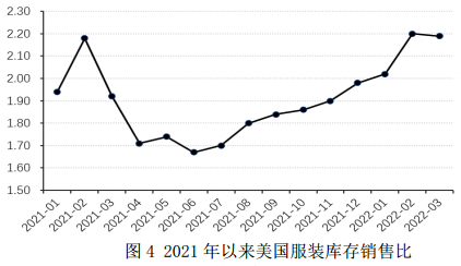 圖4 2021年以來美國服裝庫存銷售比