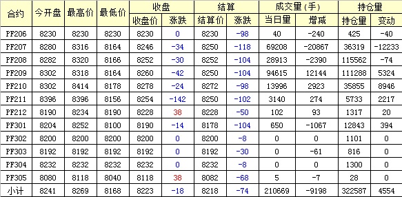 主力PF209合約當(dāng)日交易走勢(shì)