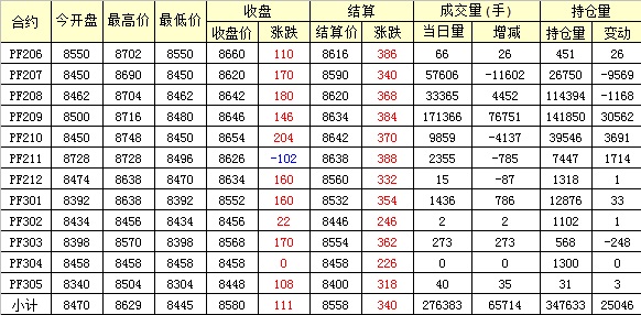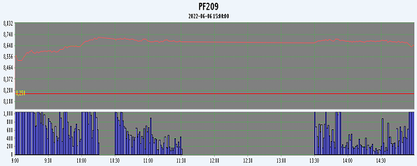 主力PF209合約當(dāng)日交易走勢(shì)