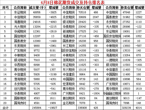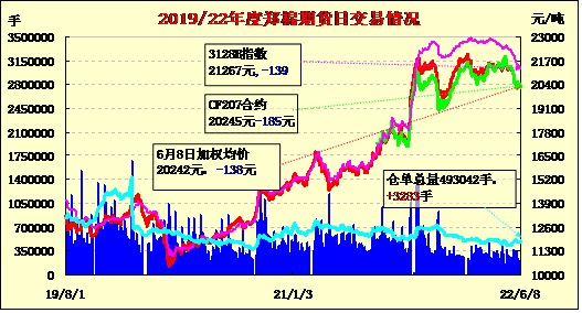 6月8日,隔夜鄭棉平開(kāi)反彈,今日早盤(pán)區(qū)間震蕩,午后在空頭賣(mài)盤(pán)壓制下回落,日線形成陽(yáng)線星。日內(nèi)成交量萎縮,持倉(cāng)量變化不大。