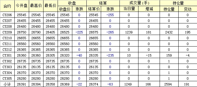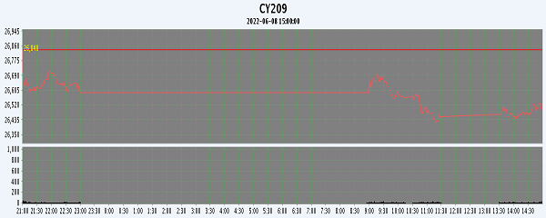 主力CY209合約當(dāng)日交易走勢(shì)