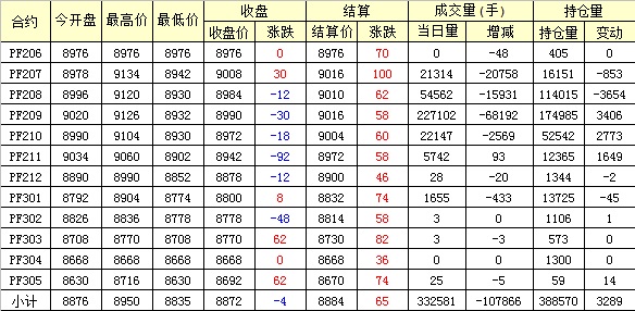 主力PF209合約當(dāng)日交易走勢(shì)