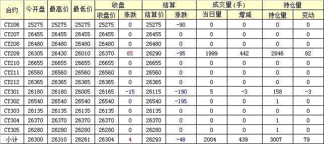 主力CY209合約當日交易走勢