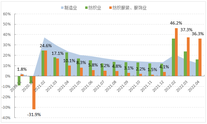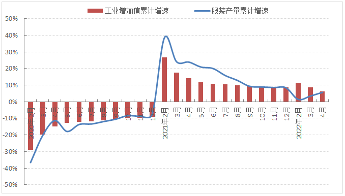 圖1 2022年1-4月服裝行業(yè)生產(chǎn)增速情況