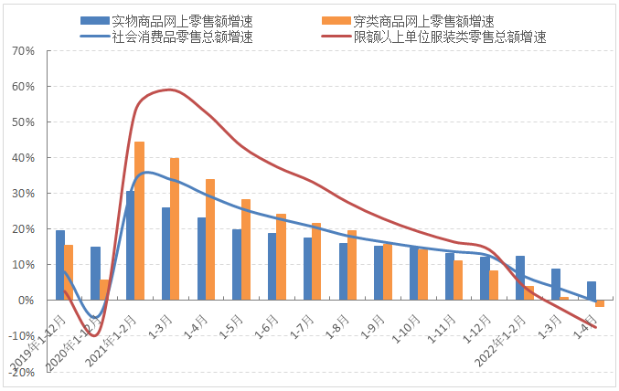 圖2 2022年1-4月國內(nèi)市場服裝銷售增速情況