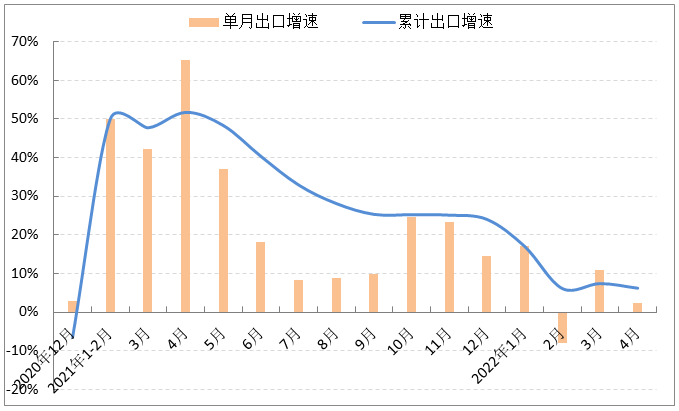 圖3 2022年1-4月我國服裝及衣著附件出口情況