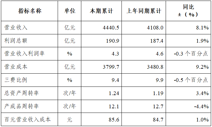 表1 2022年1-4月服裝行業(yè)主要效益指標(biāo)情況