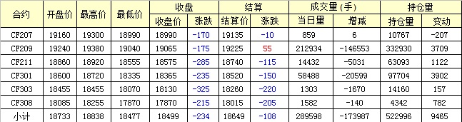 主力CF209合約當日交易走勢圖
