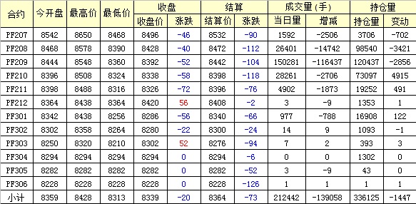 主力PF209合約當(dāng)日交易走勢