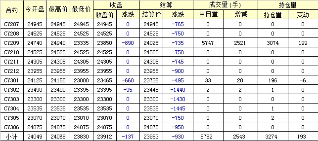 主力CY209合約當(dāng)日交易走勢(shì)