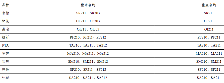 表 2022年7月各期貨品種做市合約和重點(diǎn)合約
