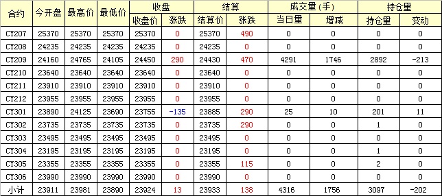 主力CY209合約當(dāng)日交易走勢