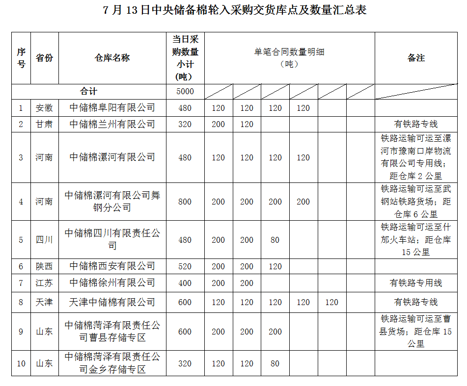 中國儲備棉管理有限公司定于2022年7月13日采購棉花5000噸(公定重量)。具體庫點及數(shù)量如下: