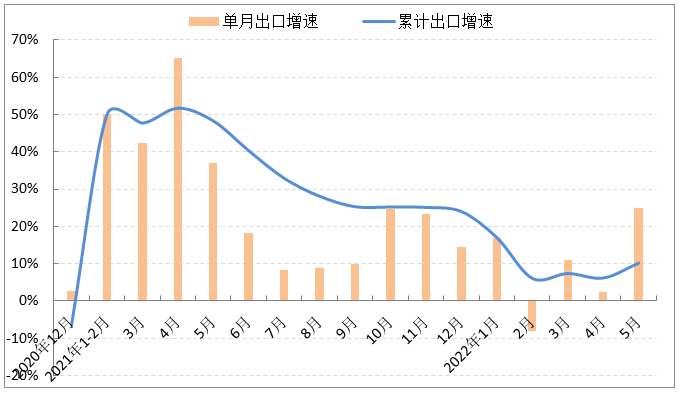 隨著穩(wěn)外貿(mào)政策持續(xù)加碼及企業(yè)復(fù)工復(fù)產(chǎn)穩(wěn)步推進,在國際市場需求穩(wěn)定恢復(fù)、物流堵點逐步打通及前期積壓訂單加速釋放等因素的有利帶動下,我國服裝出口增速大幅提升,重回兩位數(shù)增長空間。據(jù)中國海關(guān)數(shù)據(jù),5月服裝及衣著附件出口151.99億美元,同比增長24.9%,增速比4月提升22.5個百分點;1-5月我國累計完成服裝及衣著附件出口622.16億美元,同比增長10.2%,增速比1-4月提升4個百分點。