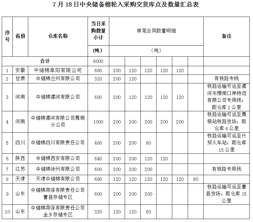中國儲備棉管理有限公司定于2022年7月18日采購棉花6000噸(公定重量)。具體庫點及數(shù)量如下:
