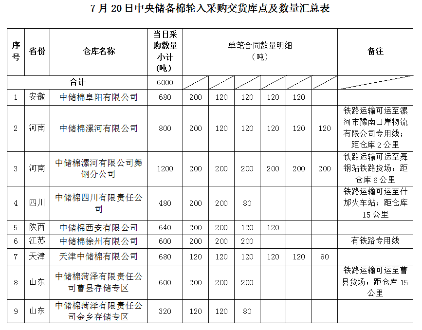 中國(guó)儲(chǔ)備棉管理有限公司定于2022年7月20日采購(gòu)棉花6000噸(公定重量)。具體庫(kù)點(diǎn)及數(shù)量如下: