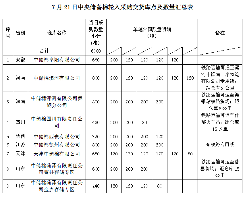 中國儲備棉管理有限公司定于2022年7月21日采購棉花6000噸(公定重量)。具體庫點(diǎn)及數(shù)量如下:
