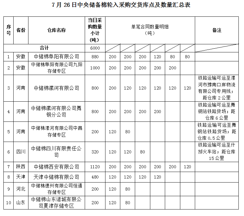 中國儲備棉管理有限公司定于2022年7月26日采購棉花6000噸(公定重量)。具體庫點及數(shù)量如下: