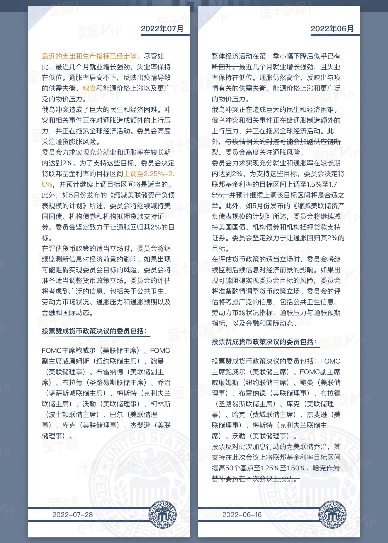 美聯(lián)儲主席鮑威爾在會后召開的新聞發(fā)布會上說,接下來幾個月內,美聯(lián)儲將尋找“令人信服的”通脹下降的證據(jù),并持續(xù)上調利率水平,在9月的會議上再一次進行“超乎尋常的大幅加息”可能是合適的。鮑威爾6月在美聯(lián)儲28年來首次宣布加息75個基點時曾表示,加息75個基點非同尋常,預計這種幅度的加息不會經(jīng)常出現(xiàn)。