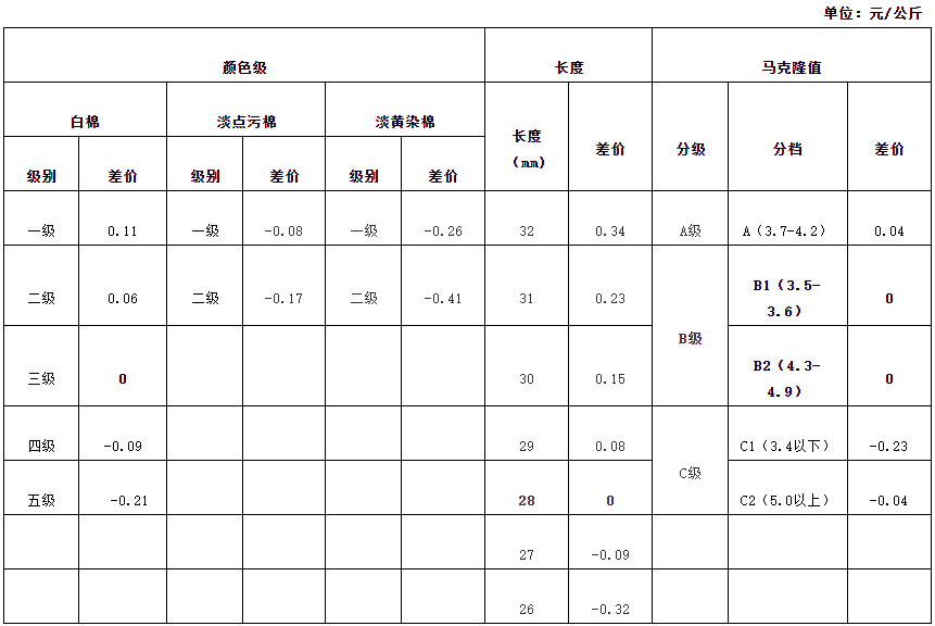 根據(jù)《中國(guó)棉花協(xié)會(huì)籽棉收購(gòu)結(jié)算差價(jià)參考表(新疆細(xì)絨棉)管理辦法》規(guī)定,依據(jù)中國(guó)棉花協(xié)會(huì)發(fā)布的2022年8月《鋸齒加工細(xì)絨棉質(zhì)量差價(jià)表》和中國(guó)棉花預(yù)警系統(tǒng)2021年9月至2022年1月新疆籽棉收購(gòu)平均衣分率數(shù)據(jù),折算得出籽棉收購(gòu)差價(jià),現(xiàn)正式發(fā)布2022年8月《籽棉收購(gòu)結(jié)算差價(jià)參考表(新疆細(xì)絨棉)》(單位:元/公斤),為新疆地區(qū)籽棉收購(gòu)工作提供參考。