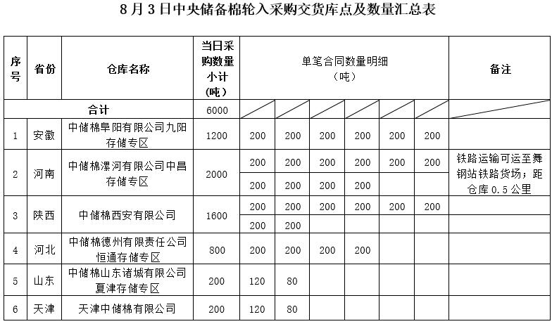 中國儲備棉管理有限公司定于2022年8月3日采購中央儲備棉6000噸(公定重量)。具體庫點及數(shù)量如下: