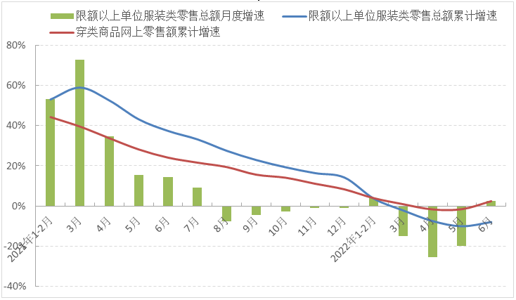 圖2 2022年1-6月國內(nèi)市場服裝銷售增速情況