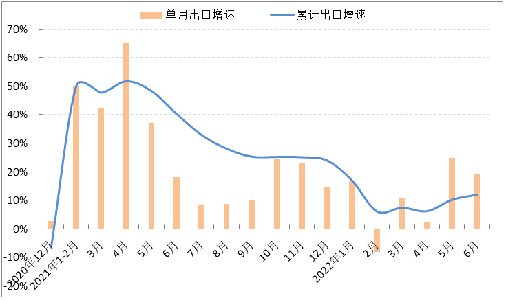 上半年,在國際市場需求穩(wěn)定恢復(fù)、強(qiáng)韌的產(chǎn)業(yè)鏈優(yōu)勢、企業(yè)快速復(fù)工復(fù)產(chǎn)及穩(wěn)外貿(mào)政策落地顯效等積極因素的推動下,我國服裝出口在2021年高基數(shù)的基礎(chǔ)上繼續(xù)保持平穩(wěn)增長。據(jù)中國海關(guān)數(shù)據(jù),1-6月我國累計完成服裝及衣著附件出口801.7億美元,同比增長12%,增速比1-5月提升1.8個百分點(diǎn);6月服裝及衣著附件出口180.4億美元,同比增長19.1%。